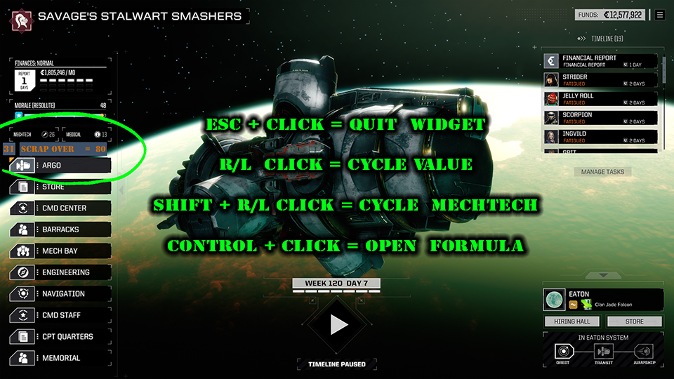 Utility does nothing on its own aside from allowing you to define a formula with subsection, then update current Mechtech while cycling between the formula's values for that Mechtech rating in an overlay. All the "functional" aspects of using the utility to impact your Battletech, Roguetech, or BTA gameplay are manual parsing of the values presented.